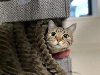 夕方は出てきてくれてキャットタワーの下から