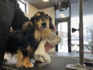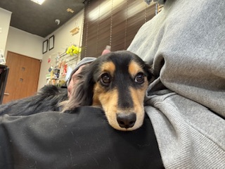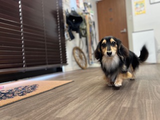 スタッフが作業をしている足元でお座りをして待っててくれるルークちゃん!とてもお利口さんでした!