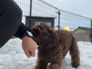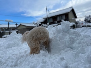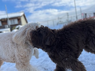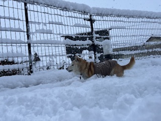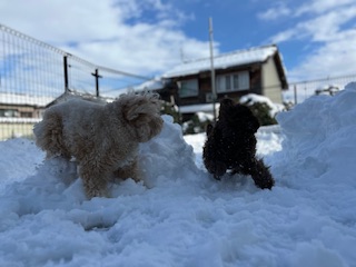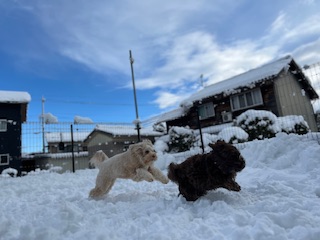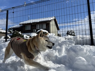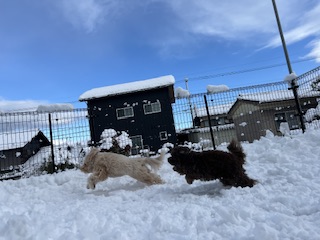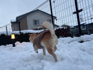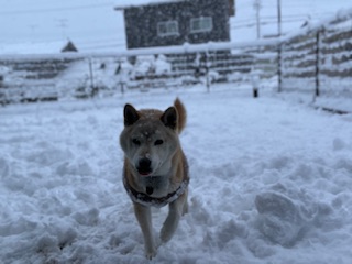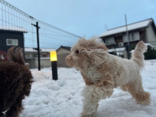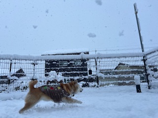 朝はまだ雪が降っていましたが元気に走り回る