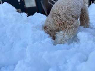 ルディーちゃん、雪山に穴を掘って