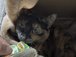 夕方はシャーっと怒られて奥に行ってしまいました。