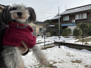 雪が溶けてきて濡れたので乾かしています。