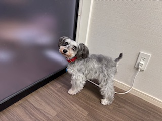 続きまして、お泊まりご利用中のミニチュアシュナウザーのシェルちゃんと猫のうにちゃん蓮ちゃんです!