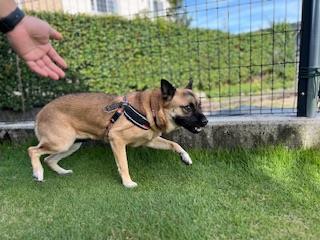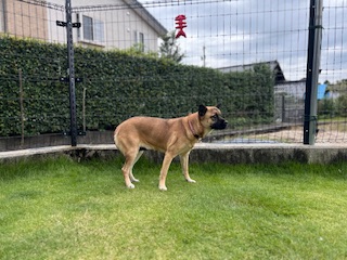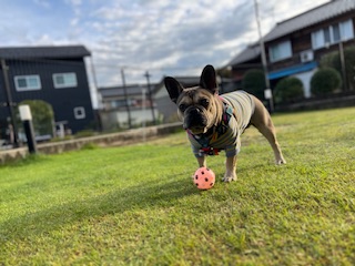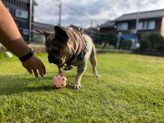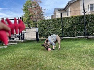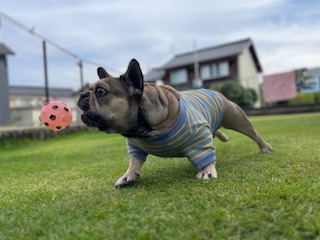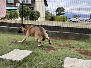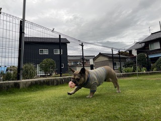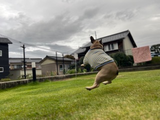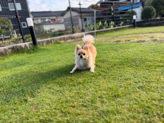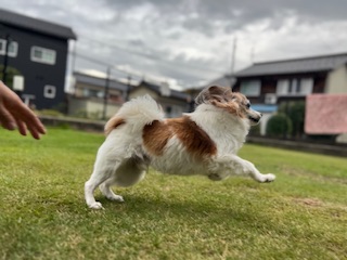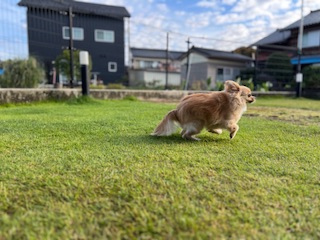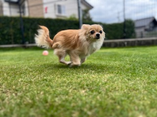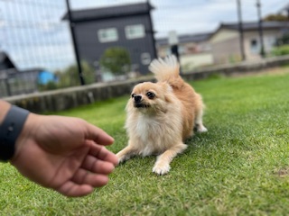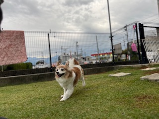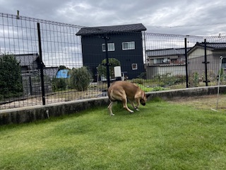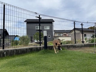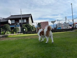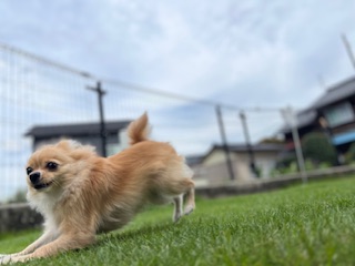 早速お外へ行きましたが怖がって低姿勢で逃げていました。。