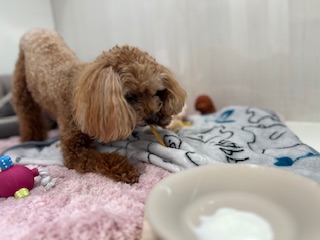 続いてはお泊まり中のトイプードルの小鉄ちゃんです