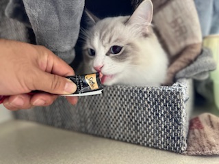 こちらで用意したチュールは食べてくれますが