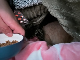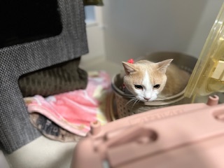 しばらくしたらモカちゃんは出て来て隠れていましたが。。。