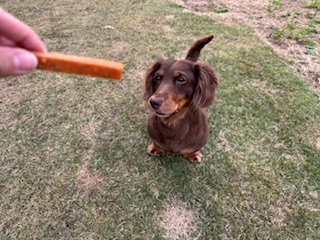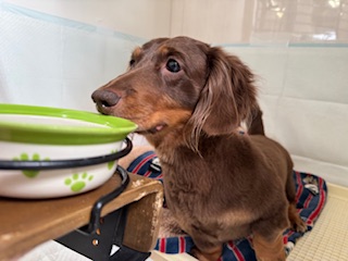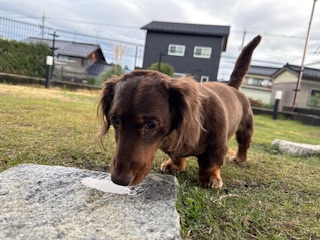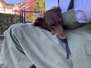 続いては、お泊まり中のミニチュアダックスフンドのあむるちゃんU・x・U