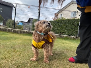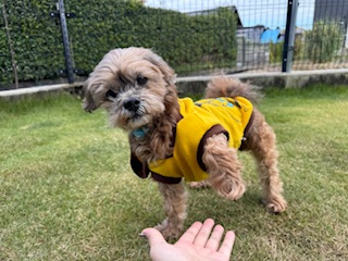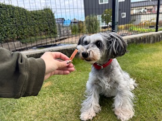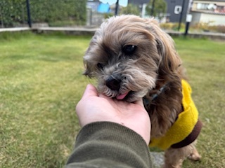 ちゃんとお手!もしてくれるのですがスタッフの手には乗せてくれないみたいです😅
