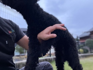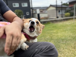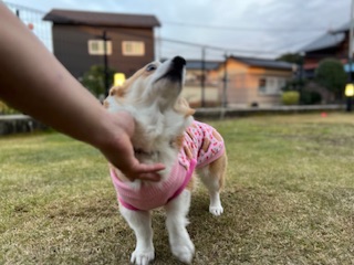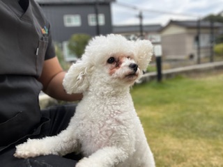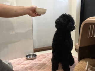 お昼もスタッフの前でお座りしてくれて撫で撫で😊