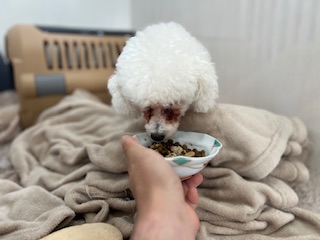 昨夜の夕食も少ししてから完食しているので今日もまだ食べていませんが完食してくれると思います。