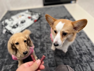 ウェルシュ・コーギーのひなたちゃんとダックスフンドのカリナちゃんfamilyです!