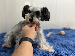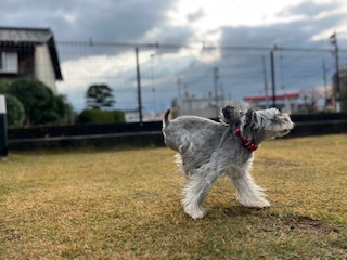 お泊り中のミニチュアシュナウザーのルルちゃん