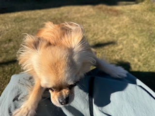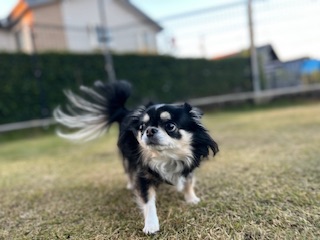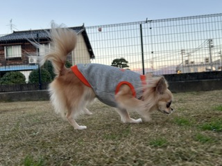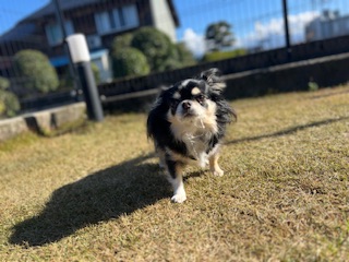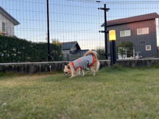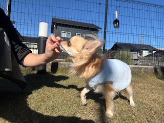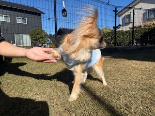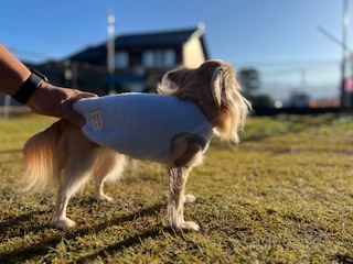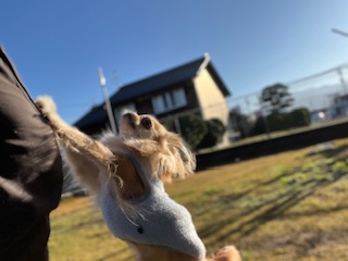 お外に出るとヨダレがたくさん出るので拭きながら出ています。