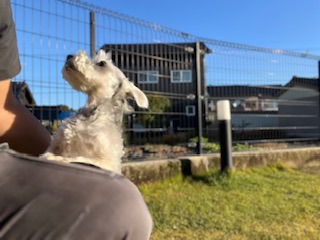 続いては本日朝6:00からお泊まりに来ましたミニチュアシュナウザーのシェルちゃんとネコの蓮ちゃん、うにちゃんファミリーです!