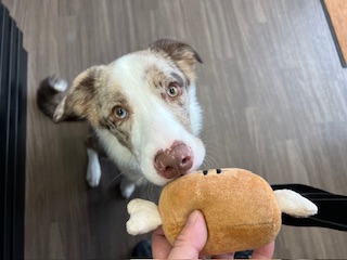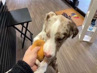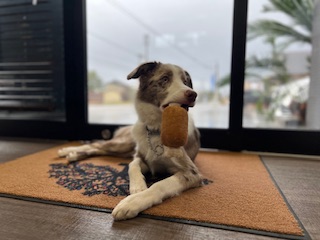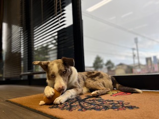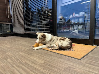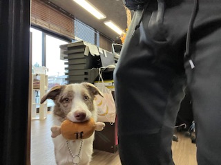 ボーダーコリーは頭の良い犬種と言われていてほたてちゃんもお店に慣れるのが早いなと感じます。