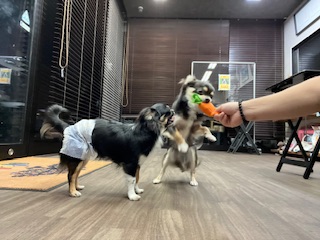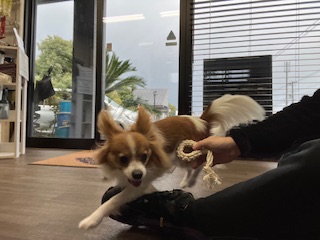 わんちゃん同士の遊びでもウーウー言いながら引っ張り合うのでスタッフとウーウー言って遊びました!!