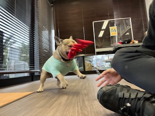 本日AM6:00からお泊まりに来られましたフレンチブルドッグのハルカちゃんです!