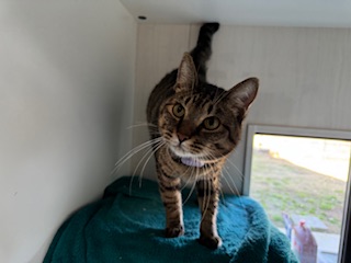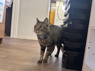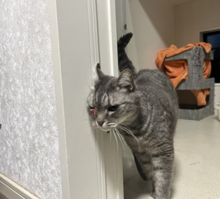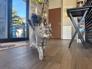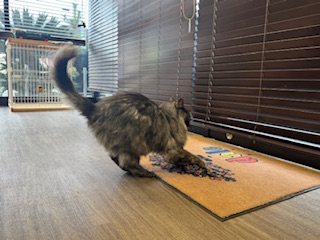 キャットタワーから出てきてお部屋のドアにスリスリしていましたがお部屋の前まででした。。
