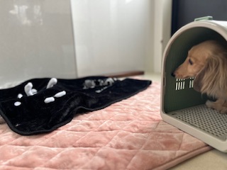 なかなかキャリーから出てきてくれないミルちゃん😭