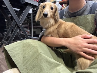 本日、11:30からお泊まりに来ましたダックスフンドのミルちゃん!!