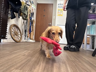 おもちゃを持ってるスタッフを発見し奪い取ろうとして一生懸命引っ張ってます😂