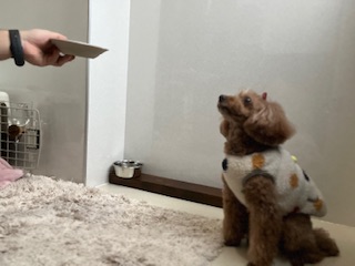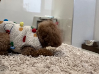 続いてはお泊まり中のトイプードルの花ちゃんです。