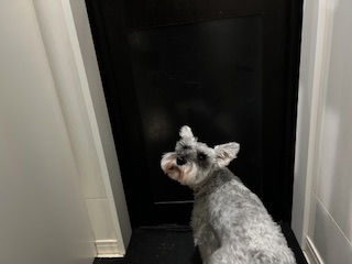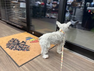 トリミングルームを見てわんわんと言ってる花ちゃん!