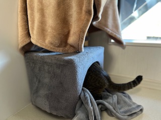 頭のリボンが緩くなって来ているのでお迎えの時までに直します。