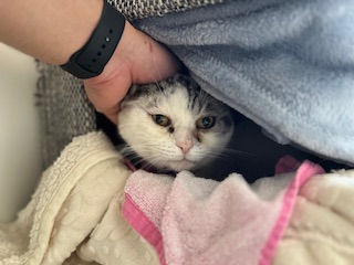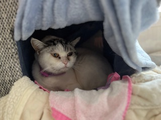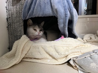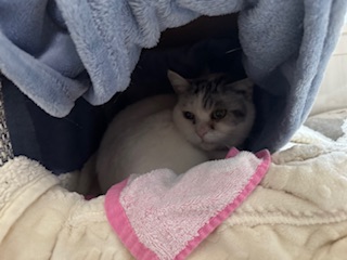 お部屋では、お家のベッドで寛ぐさくらちゃん😊