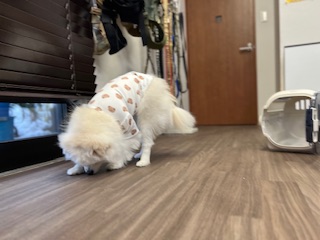 お迎えかチェックするシュシュまるちゃん😅