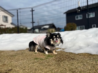 またお散歩して立ち止まるシュシュまるちゃん。