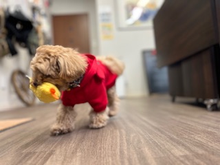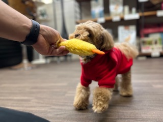 シャンプー後も元気にスタッフと遊んでいます!