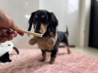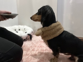 本日6:00からお泊まりに来ましたダックスフンドの