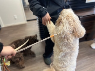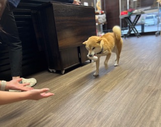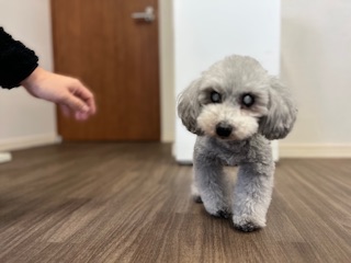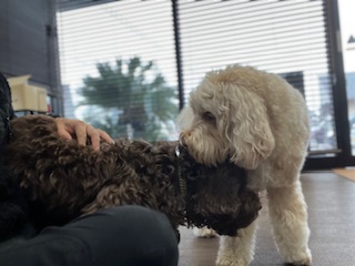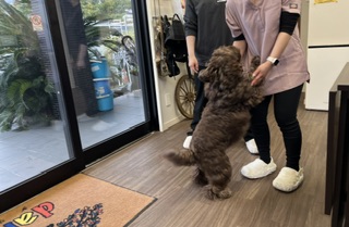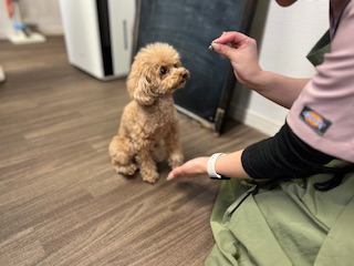 スタッフの元へ来てクンクンするモコちゃん