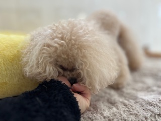 続いてはお泊まり中のトイプードルのモコちゃん