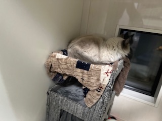 お昼はキャットタワーの上でまったり