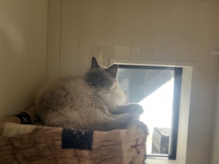 お昼もキャットタワーから降りてきて