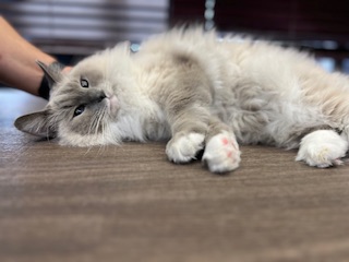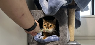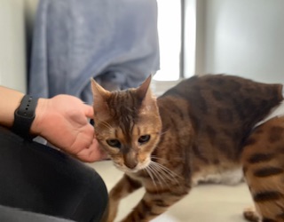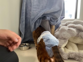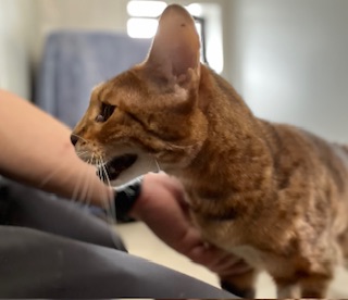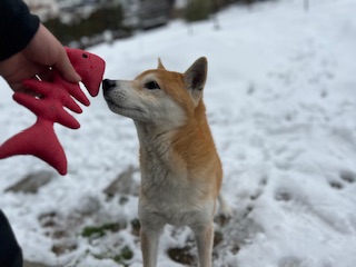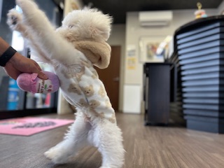 おもちゃを越えてスタッフを捕まえようとしていますね😅
