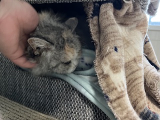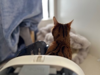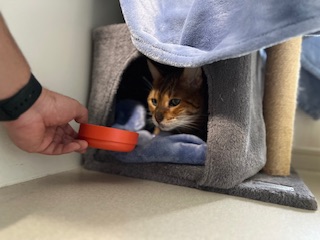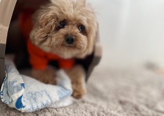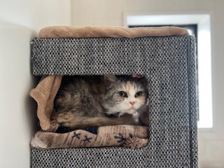 お昼は、お部屋の中に設置したお家のゲージで休んでいました。