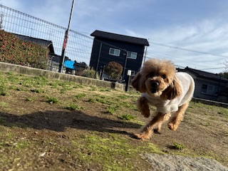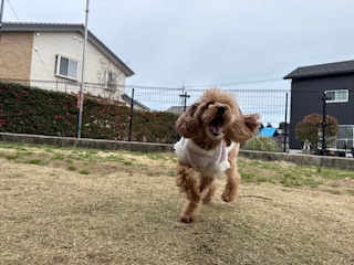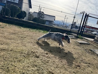昨日は恐る恐るドッグランにいましたが、今日はもう爆走して走り回ってます😊!