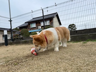 夕方もお外へ!おもちゃを見つけたココちゃん!