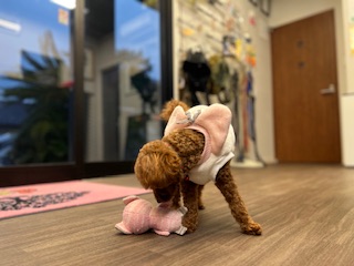お昼にはすっかり慣れて遊ぼ〜と誘っている様子✨
