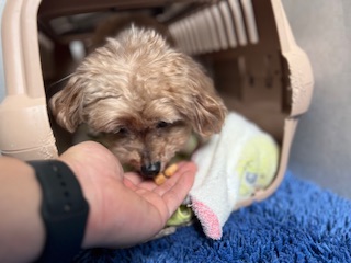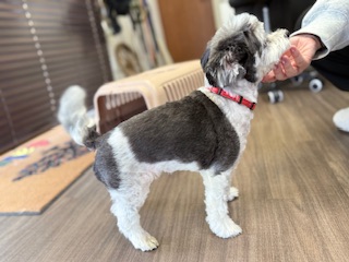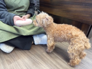 スタッフにナデナデされて嬉しそうなプントちゃん🎶