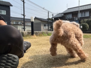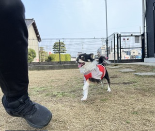 スタッフがお外に来るのを待っているハルカちゃん!