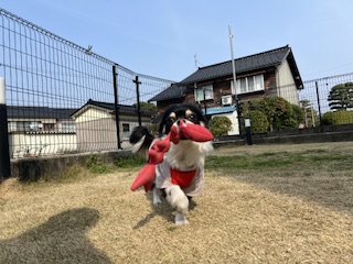 お昼もお外で走ったり