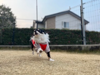 夕方もお外でお散歩して