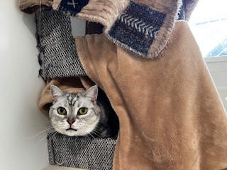 キャットタワーから出て来て