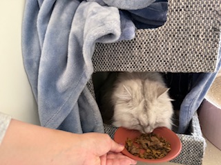 ご飯だよ〜と持っていくと匂いをクンクン