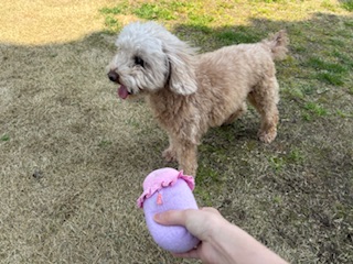おもちゃを見つけるとすぐに咥えてアピール😊